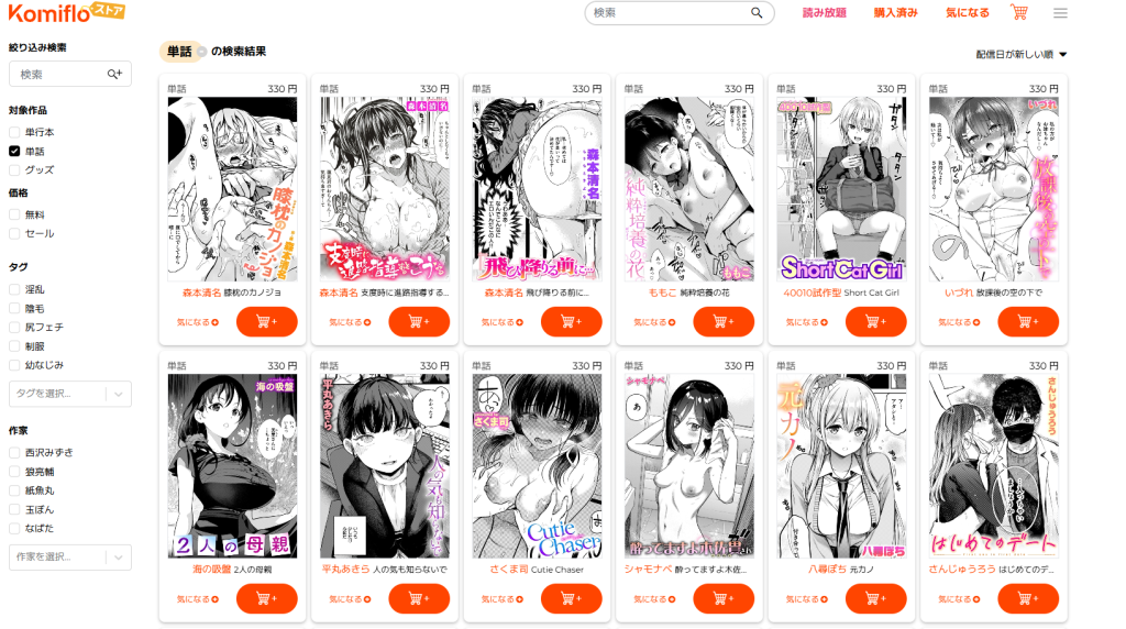 今まで単行本は作家のページよりFANZAもしくはDLSiteで購入しなければいけませんでしたが、KomifloストアがオープンしたことによりKomifloプラットフォーム上で完結できるので楽です。