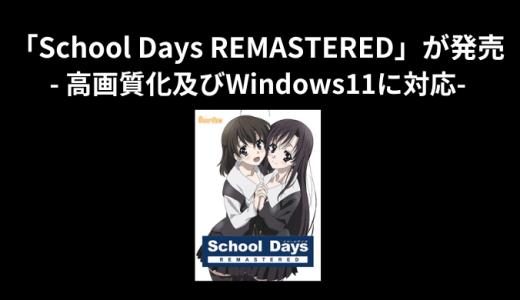 2025年12月19日、OverflowよりHQ版をベースに新エンジンへの移行と映像アップコンバートを行い、Windows 11環境に対応したリマスター版「School Days REMASTERED」が発売されました。 ... ]]>